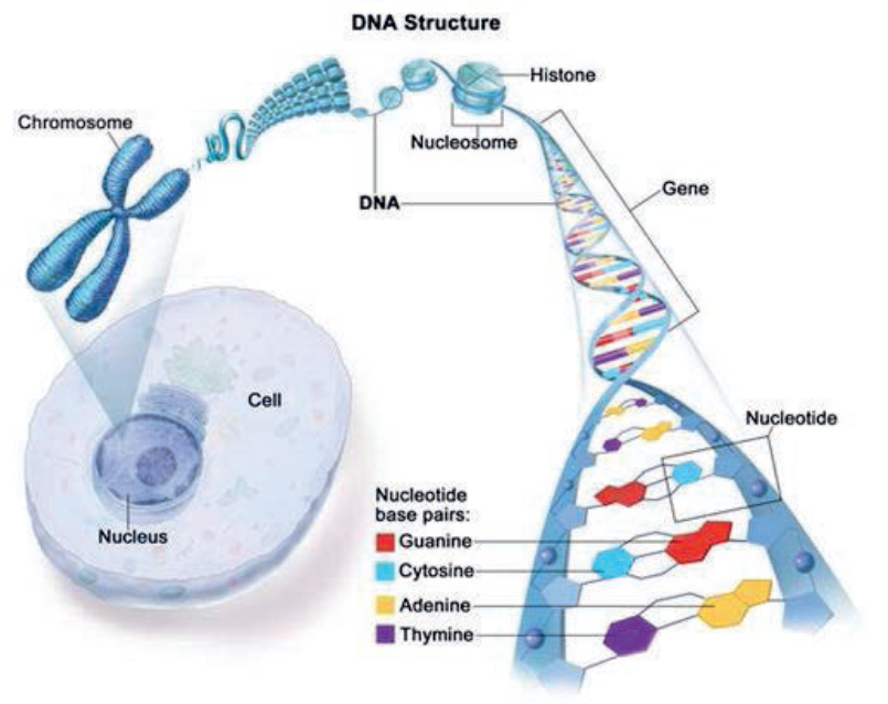 Sections of the DNA structure that contain the set of instructions that determine the characteristics of an organism are called genes. Genes are the basic structural and functional units of inheritance in nature. Genes pass from parents to offspring during both sexual and asexual reproduction through cell division. Genes are located on chromosomes. Chromosomes are threadlike structures made of a protein called histone and DNA molecule. Each chromosome may contain hundreds to thousands of genes that are arranged linearly along the length of each chromosome (like beads on a string), with each gene having its own unique position on to chromosomes called locus or loci.