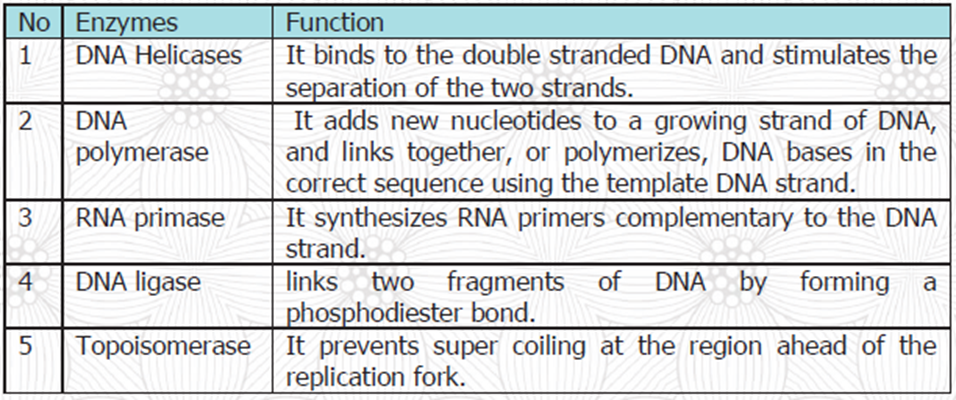 - Table that shows enzymes and their functions is: