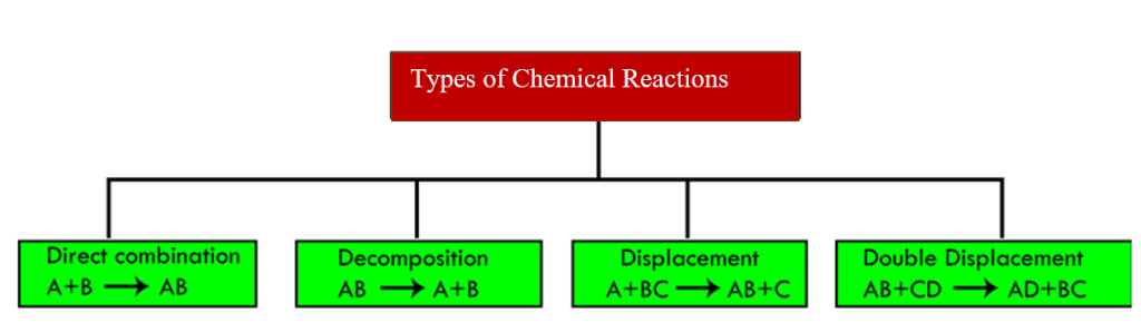 - List the four types of chemical reactions;