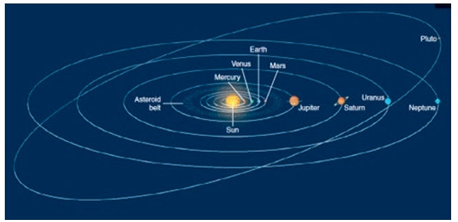 Figure 1.1 The Solar System (Sun & Planets) [Wicander & Monroe, 2010]