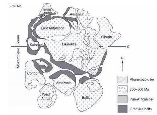 Figure 1.2 Neoproterozoic Supercontinent; Rodinia at about 750 Ma