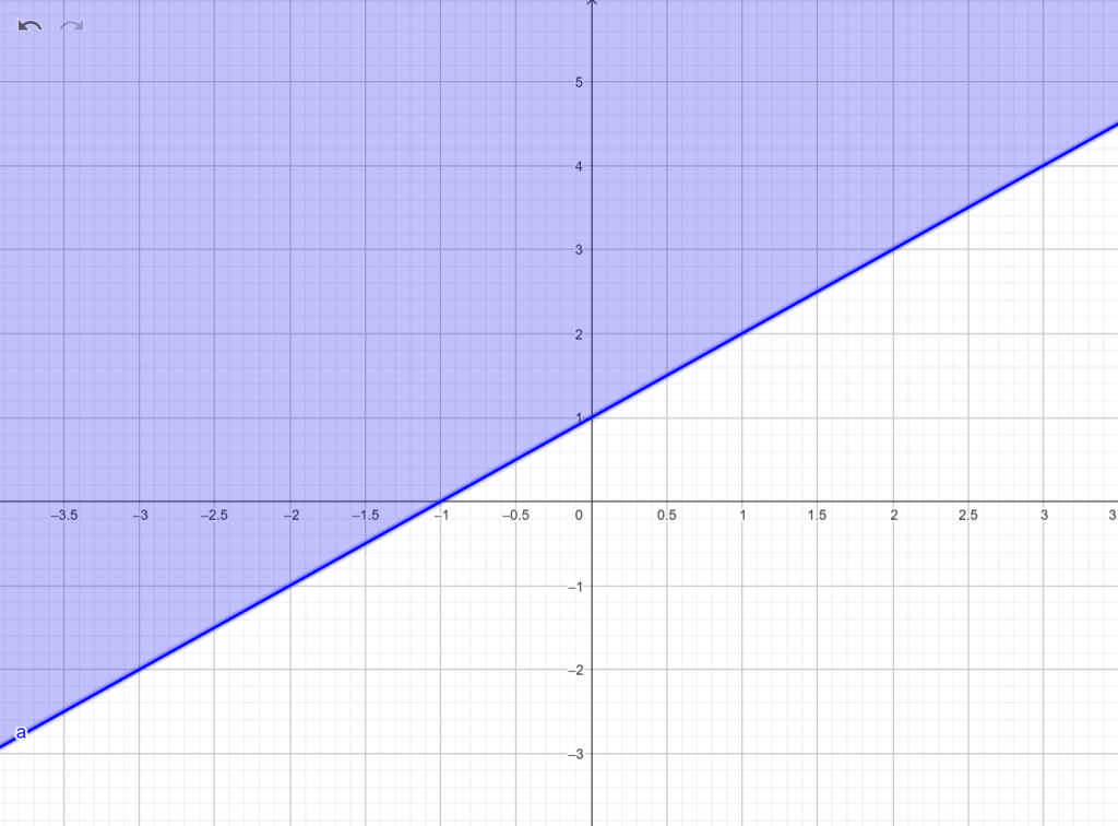 Sketch the graph of the relation R = {(x, y): y β₯ x + 1; x, y β β}.