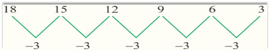- An arithmetic decreasing pattern is given below with constant difference -3.