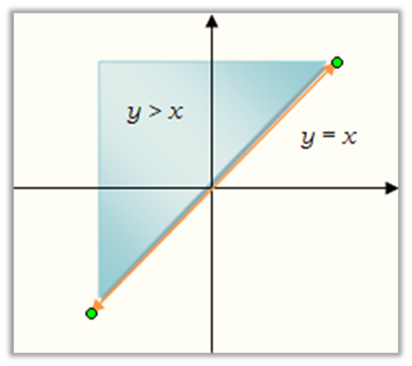 - Take points representing ordered pairs, say (0, 3) and (0, β2) from above and below the line y = x.
