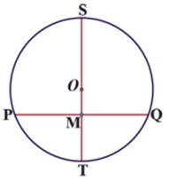 Given A circle with center 𝑂 and a chord (PQ) whose midpoint is 𝑀. We want to prove that ∠𝑂MP is a right angle. Draw the diameter (ST) through point M. Then, the circle is symmetric about (ST) and (PM) ≡ (QM) . So, (ST) is perpendicular bisector of and hence ∠𝑂MP is a right angle.