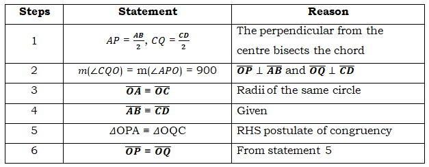 | 2 | OA ≡ OB ≡ OP≡ OQ | Radii of the same circle |