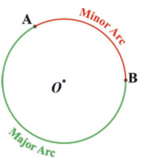 Two points lying on a circle actually define two arcs. The shorter is called the ‘minor arc‘ and the longer one is called the ‘major arc‘.
