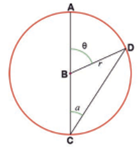 Case II. The diameter is between the rays of the inscribed angle 𝑎 (see figure 5.20).