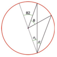 𝑎2 + 𝑎2 + (180° – 𝜃2) = 180° which implies 𝜃2 = 2𝑎2