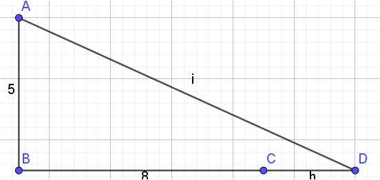 Point B is 5m south of point A , point C is 8m east of point B , and point D is hm east of point C . If the distance from A to D is 13m , then find the value of h.